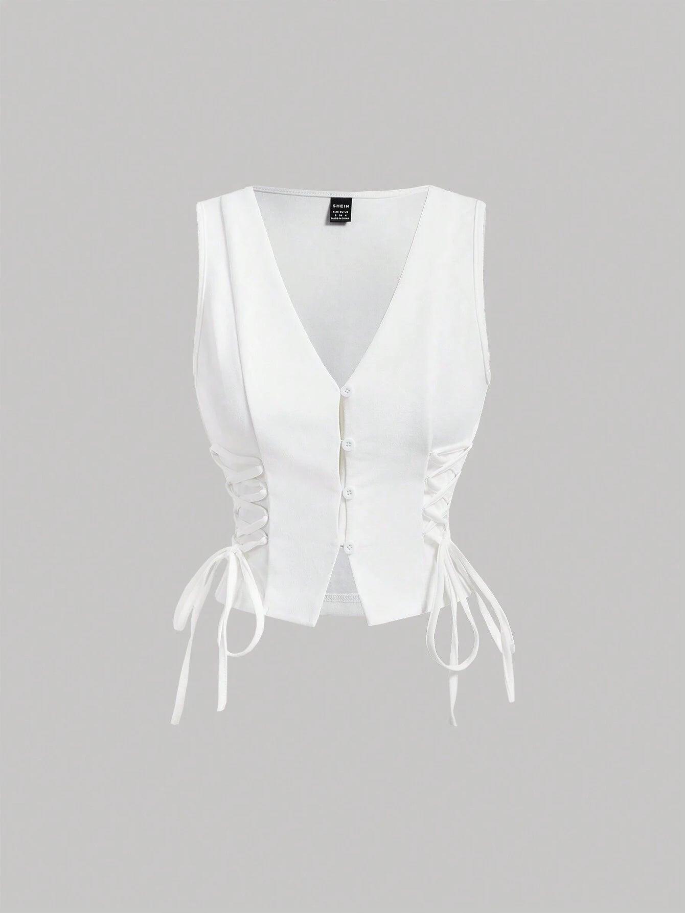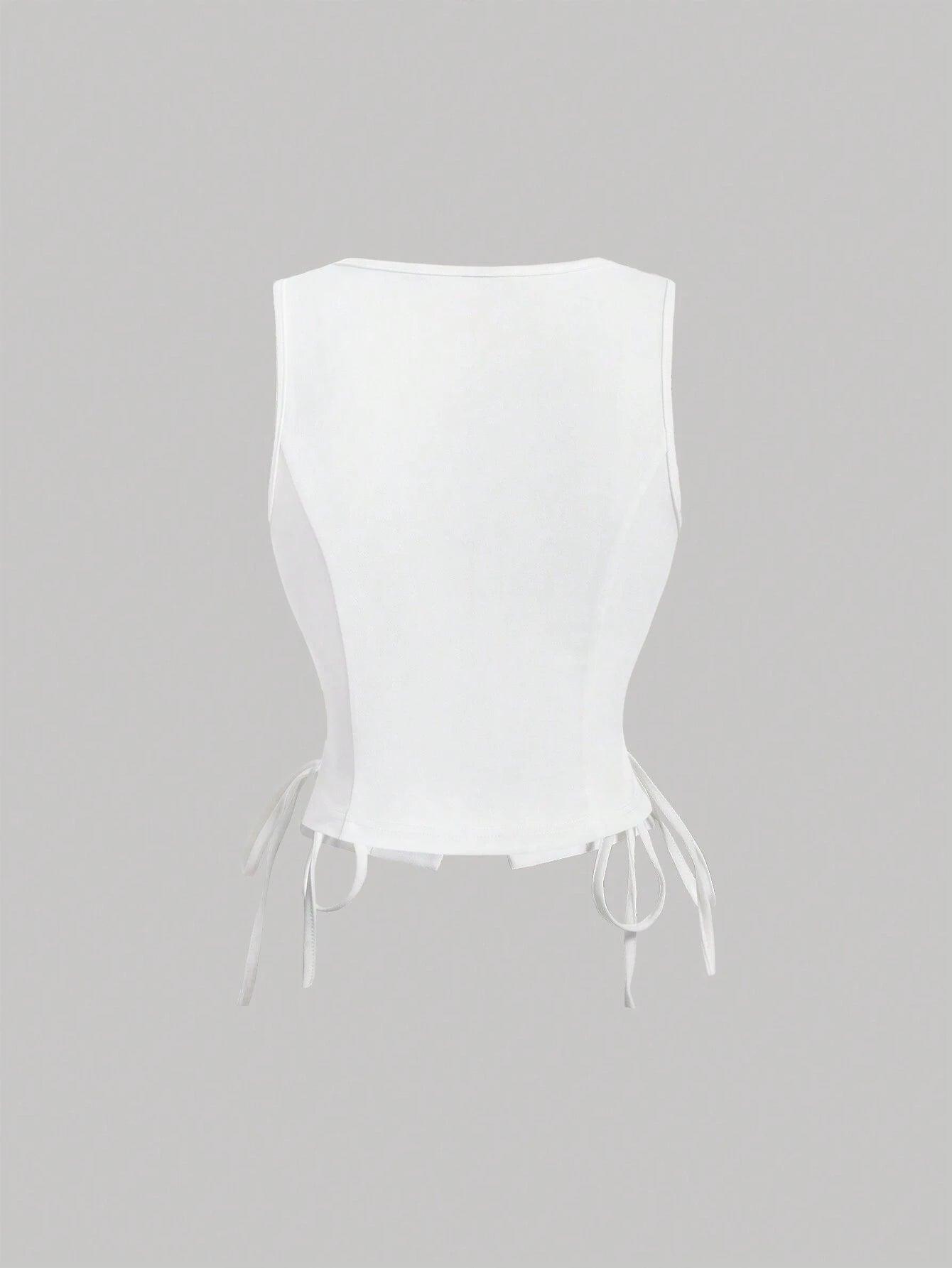 Buttoned Strap Side Tie At Waist Summer Tank Top