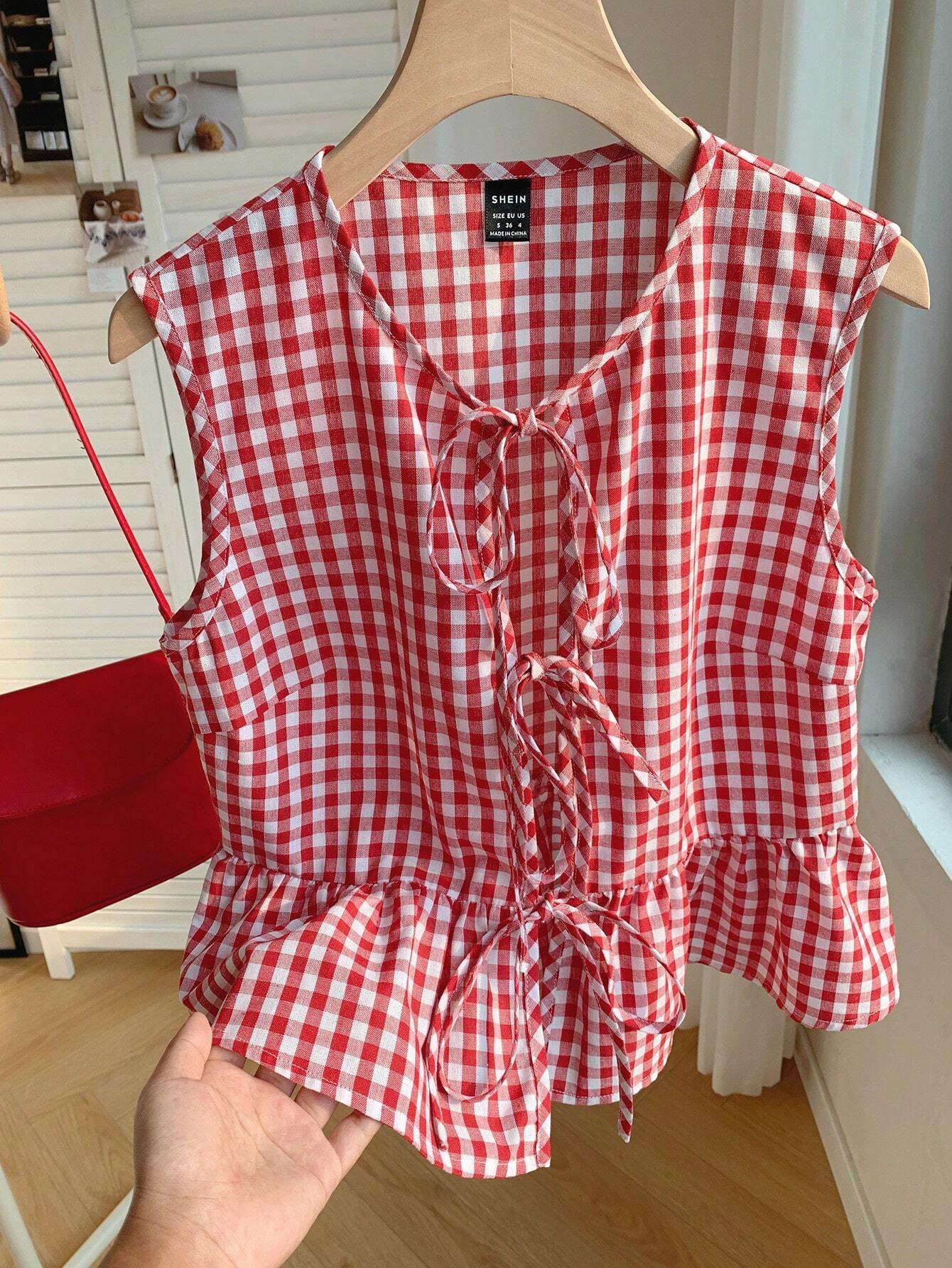 Comfortcana Red Plaid Peplum Top