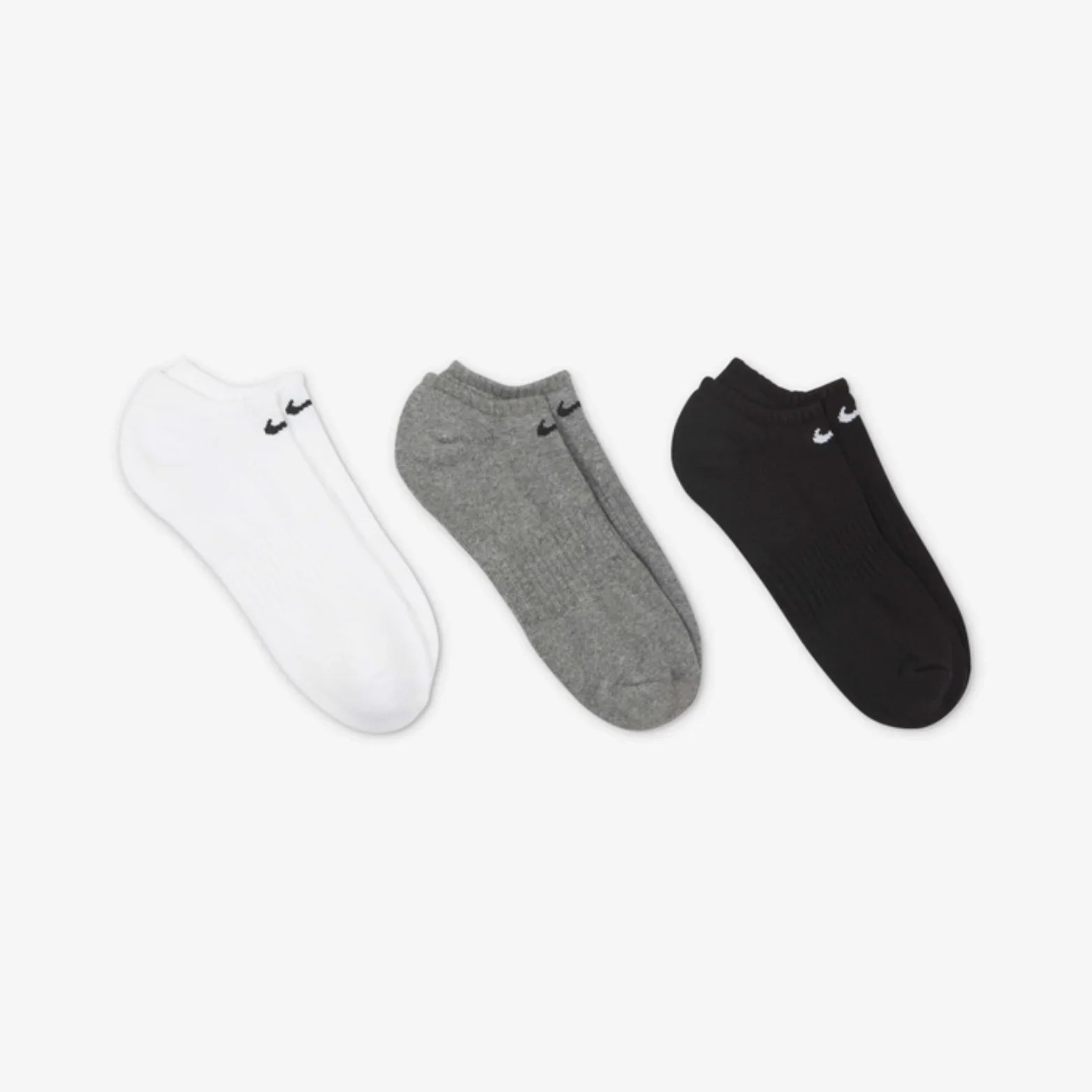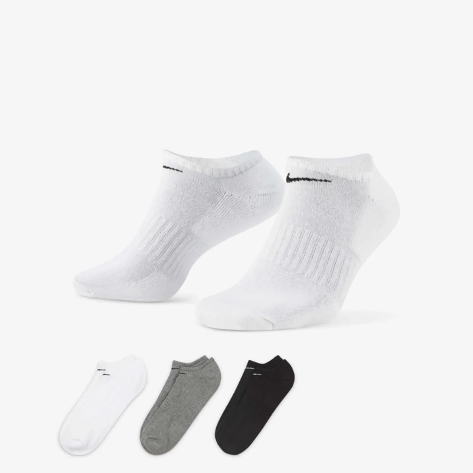 Train in comfort with the Nike Everyday Cushioned Training No-Show socks. Featuring soft fabric with sweat-wicking technology, these socks keep your feet dry and supported. The no-show design stays hidden in shoes, while extra cushioning underfoot adds comfort during workouts and daily wear.