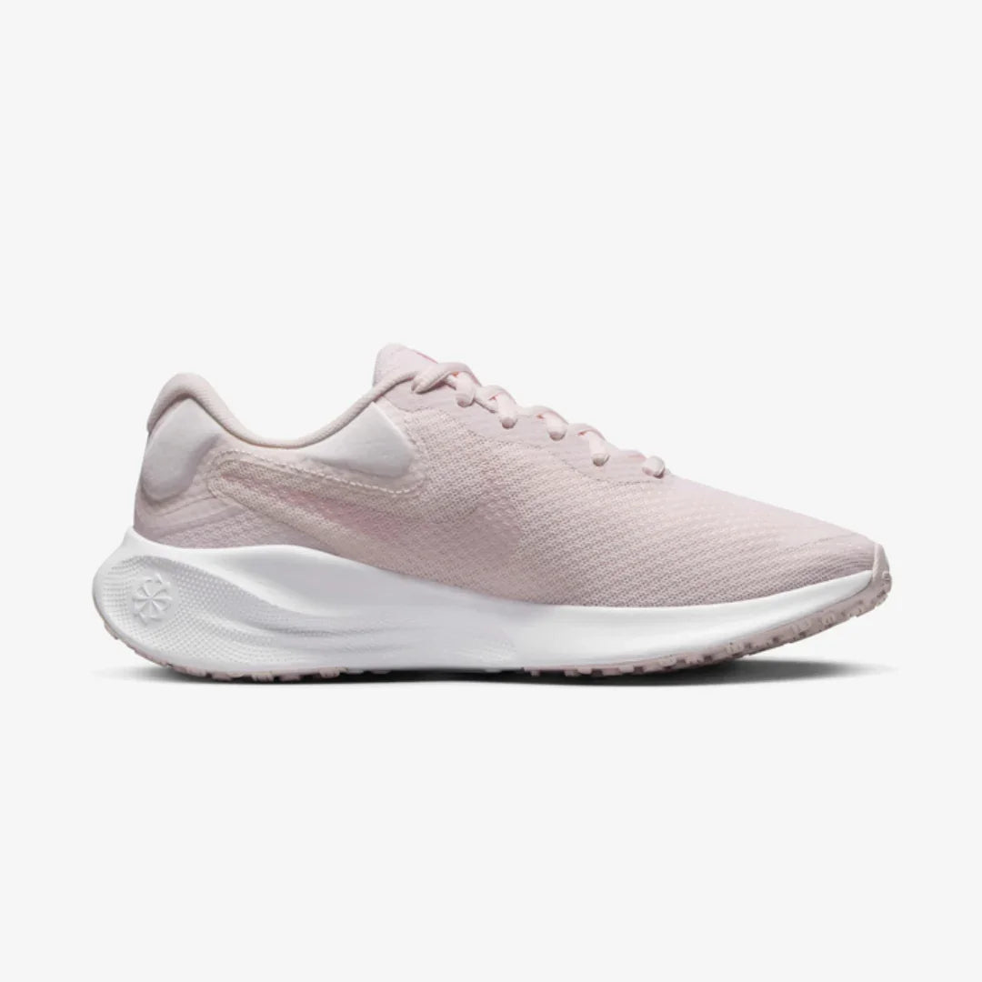 The Nike Revolution 7 women’s road running shoes are made for everyday runs and active days. They feature a breathable mesh upper that helps keep your feet cool and a soft foam midsole that gives smooth cushioning with every step. The rubber outsole offers reliable grip on roads and paths, and the supportive fit helps you stay comfortable during runs or workouts.