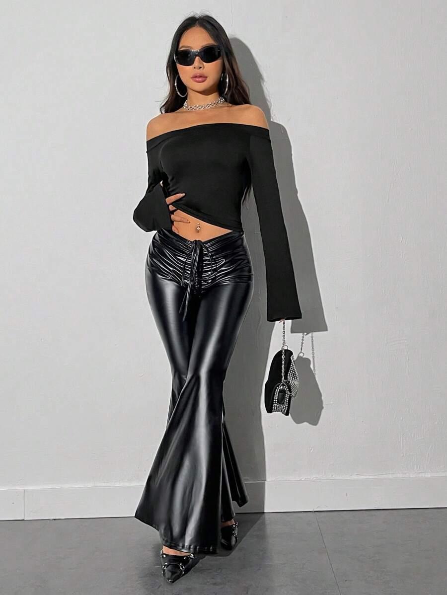SHEIN Off-shoulder Ruffled Short Sleeve Crop Top